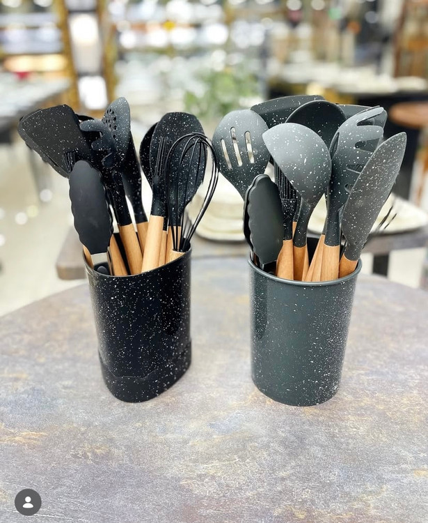 ست کفگیر ملاقه سیلیکونی ۱۱ پارچه مناسب قابلمه و تابه .گرانیتی چدن و پیرکس از خش انداختن ب قابلمه هاتون جلو گیری میکند نیاز برای هر اشپزخانه